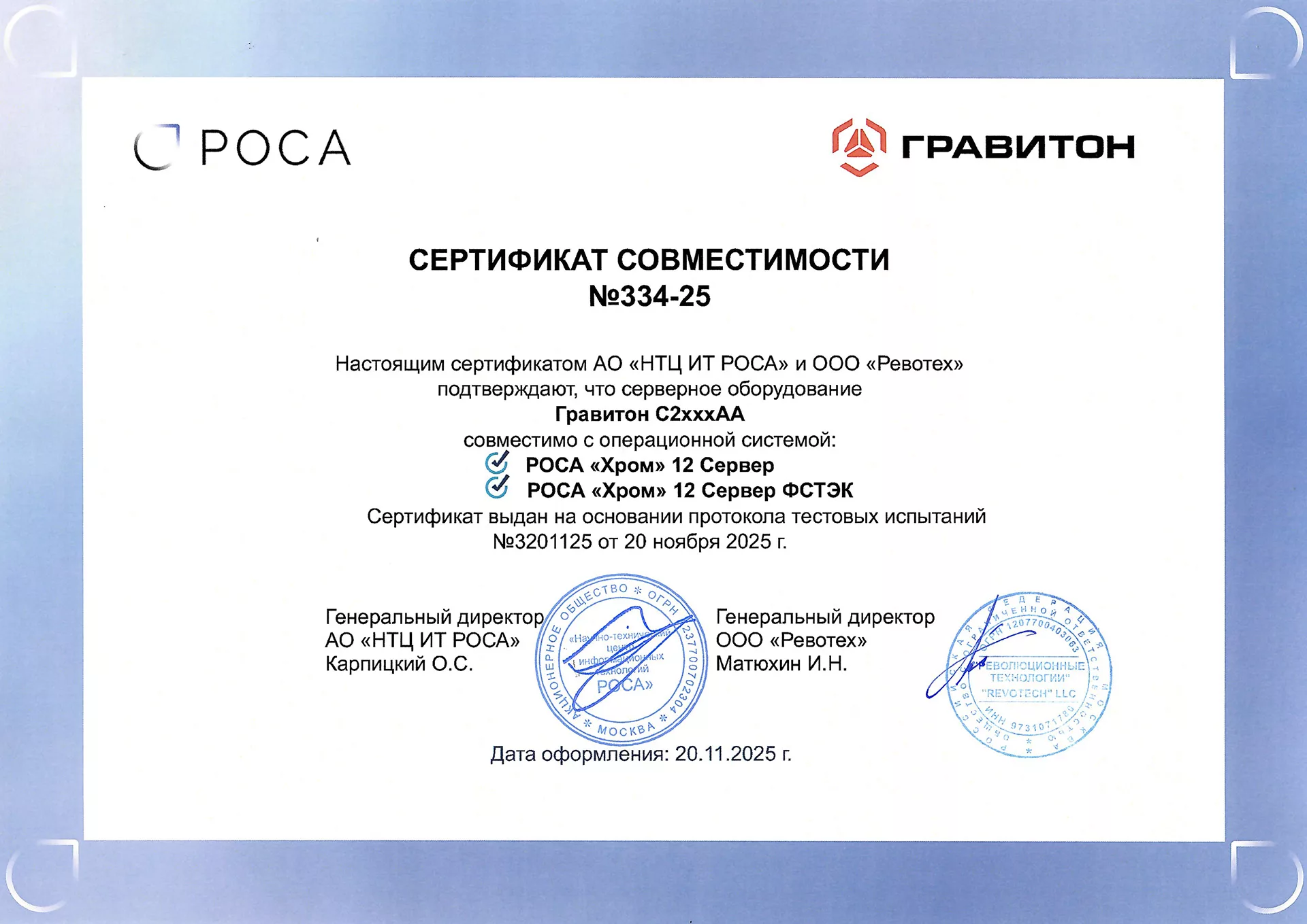 Разработчик и производитель отечественной вычислительной техники, один из лидеров в области импортозамещения. Продукция внесена в Единый реестр российской радиоэлектронной продукции Минпромторга России, сертифицирована ТР ТС, МПТ, РЭП, Минкомсвязи.