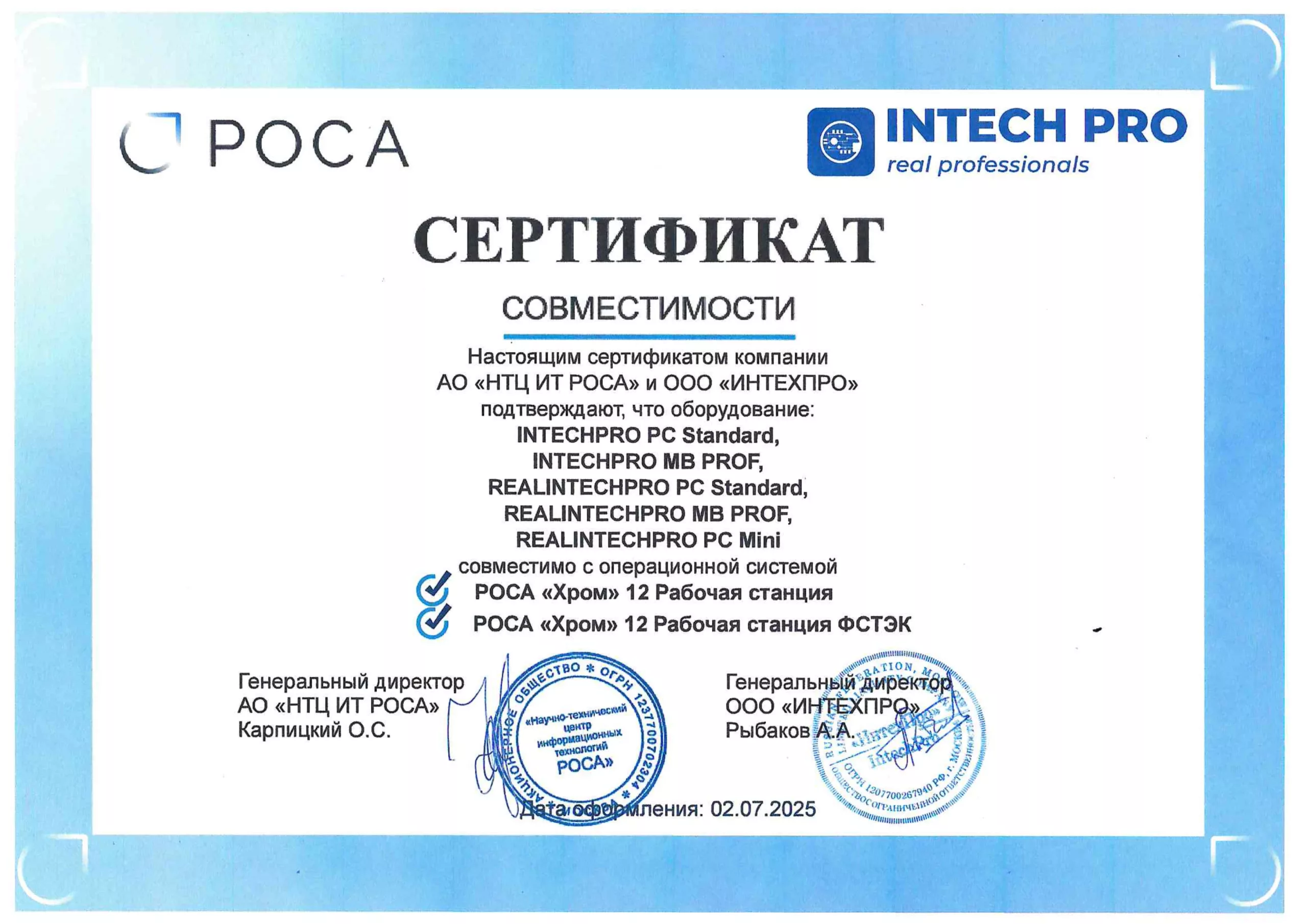 Производитель компьютерного оборудования ТМ INTECHPRO и REALINTECHPRO. В линейке наших продуктов — моноблоки, системные блоки, АРМ, включенные в реестр промышленной продукции, произведенной на территории Российской Федерации, а также ноутбуки и мини ПК как для офисного, так и для домашнего использования.